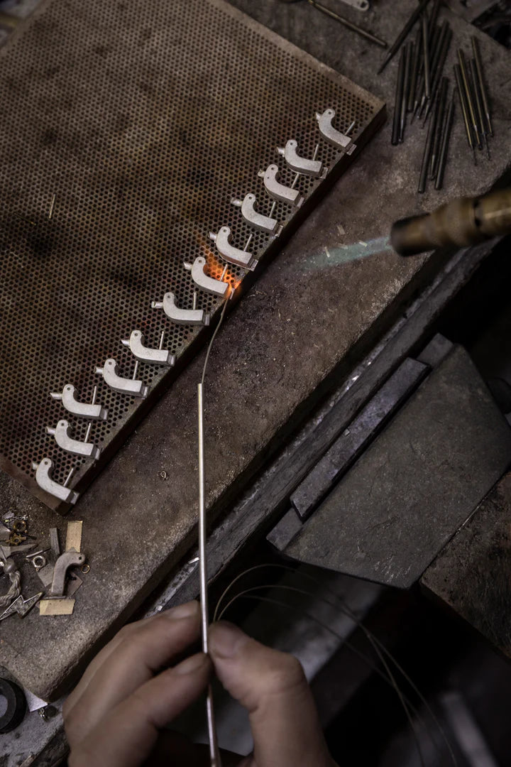 although the production of pieces with silver and gold has evolved since then, our pieces are still handcrafted with the care of experienced goldsmiths. each piece is handcrafted to li's designs, so it takes a lot of time to bring them to life and achieve perfection.