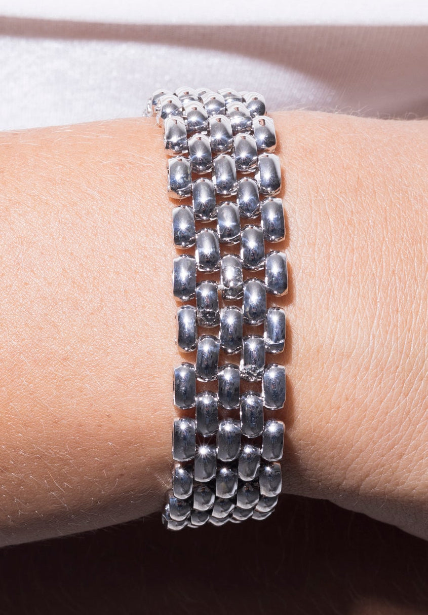 length 17.5 cm (size small) or 18.5 cm (size medium) width 1.5 cm weight 27.69 gr closing mechanism clasp closure